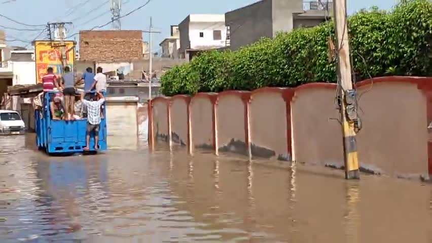 रावतसर : कस्बे में भारी वर्षा के बाद दुकानों से समान को सुरक्षित जगह पर ले जाते हुए दुकानदार।