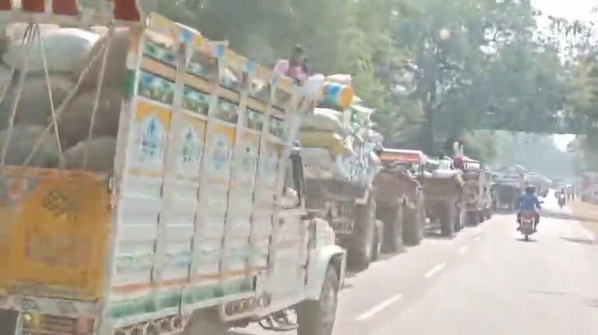 ललितपुर: अपनी उपज बेंचने के लिए किसानों को अपनी बारी के लिए करना पड़ रहा घण्टों इंतजार, मंडी से 2 किलोमीटर दूर तक लग रहा लम्बा जाम