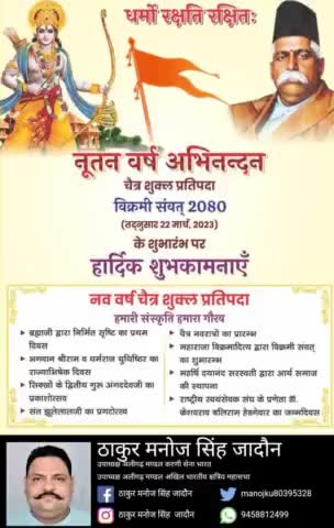 *नूतनवर्षाभिनंदन* भारतीय नव वर्ष, चैत्र शुक्ल प्रतिपदा - विक्रमी संवत् 2080 की हार्दिक शुभकामनाएं ... अपना नववर्ष आपके जीवन में खुशियां, सुख, समृद्धि, ऐश्वर्य व आ