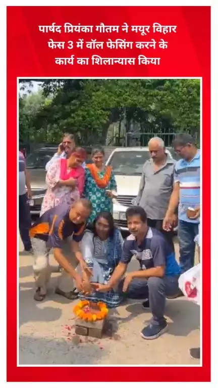 पार्षद प्रियंका गौतम ने मयूर विहार फेस 3 में वॉल फेसिंग करने के कार्य का शिलान्यास किया. इस मौके पर स्थानीय rwa पदाधिकारी और क्षेत्र के लोग मौजूद थे
