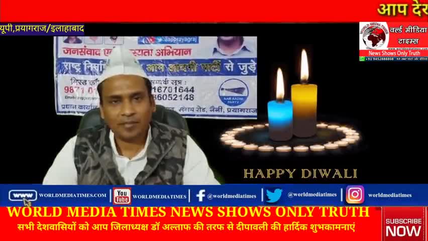 प्रयागराज: सभी देशवासियों प्रदेशवासियों को दीपावली की हार्दिक शुभकामनाएं आप जिलाध्यक्ष डॉ अल्ताफ #worldmediatimes.com