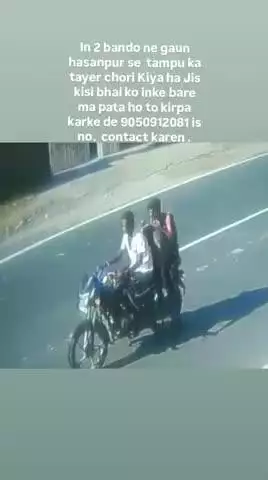 In 2 bando ne gaun hasanpur se tampu ka tayer chori Kiya ha Jis kisi bhai ko inke bare ma pata ho to9050912081 par conc