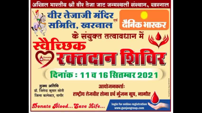 तेजा दशमी पर रक्तदान के लिए किया आह्वान रजिस्ट्रेशन नंबर 6376321234 पर व्हाट्सएप करे