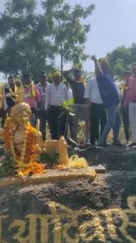 बैतूल: भगवान बिरसा मुंडा की प्रतिमा सोनाघाटी में स्थापित है जिसमे jays के कार्यकर्ताओं द्वारापीले गमछे से माल्यार्पण किया
