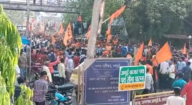 रामभक्तों से जमुई हुआ पूरा भगवामय भगवान पुरुषोत्तम श्रीराम जी के जन्मोत्सव पर आज निकाली गई रामभक्तों द्वारा शोभायात्रा का कचहरी चौक का एक छोटी सी झलक ! Narendra Modi Samrat Choudhary