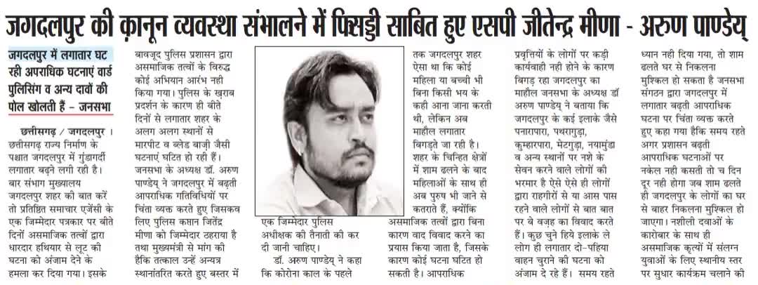 क़ानून व्यवस्था संभालने में फिसड्डी साबित हुए एसपी जीतेंद्र मीणा आए दिन घट रही चाकूबाजी, ब्लेड मारना, लूट मारपीट की घटना
