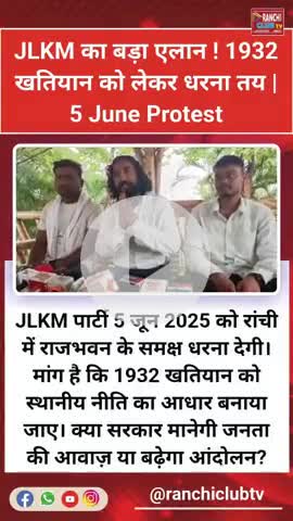 5June को होगा राजभवन घेराव | JLKM की खतियान नीति की लड़ाई #JLKM #5JuneProtest #RajbhavanGherao #1932 #JLKM #5JuneProtest #RajbhavanGherao #1932Khatiyan #ShortsNews #NewsUpdate #PoliticalShorts #RanchiNews #JharkhandNews #SthaniyaNiti #YouthProtest #RanchiClubTV #BreakingNews #IndianPolitics #hindinews