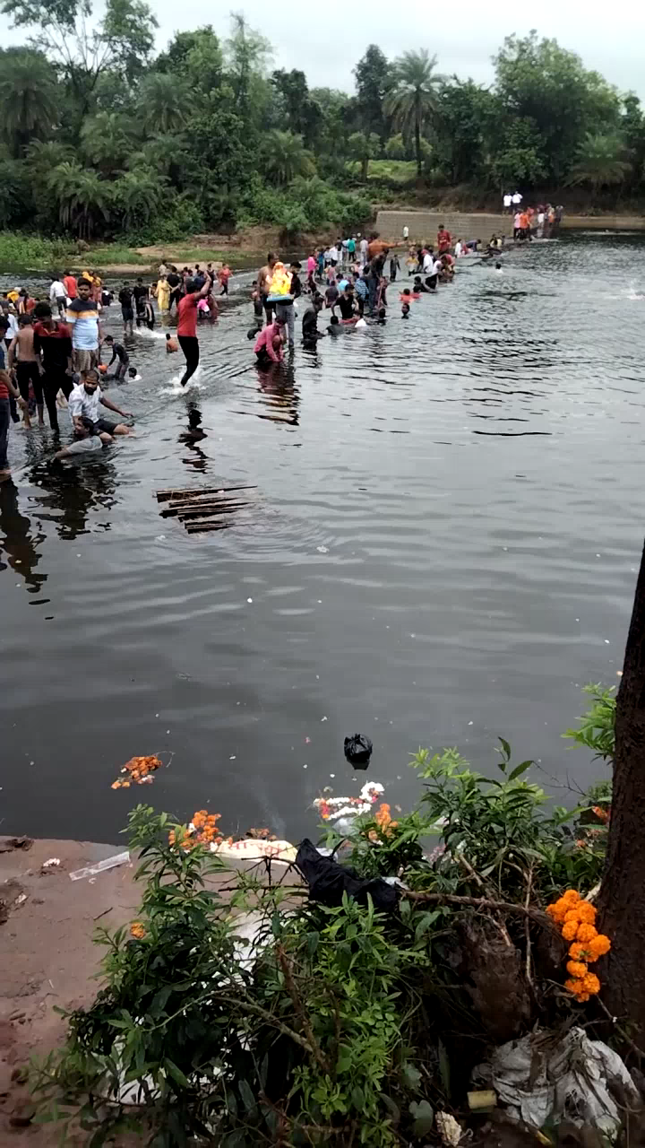 झांसी: आठोनदन नदी पर गणेश विसर्जन चल रहा है जहां पर लोग काफी अच्छी भीड़ देखने को मिल रही है यहां पर लोगों का हुजूम लगा हुआ है