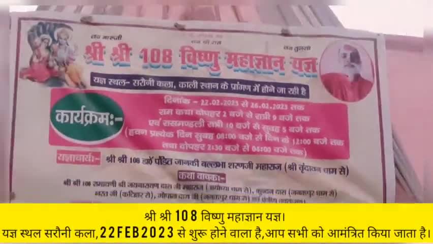श्री श्री108 विष्णु महाज्ञान यज्ञ 22Feb2023 को सरौनी कला में होने जा रहा है आप सभी सादर आमंत्रित हैं।