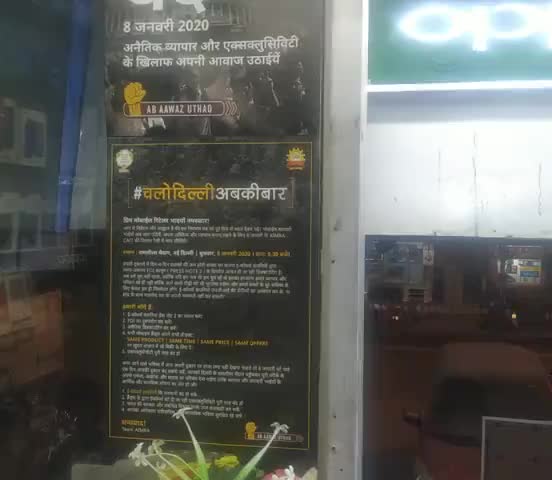 सिविल लाइन्स: DELHI & NCR 8 जनवरी को बंद के लगे पोस्टर।