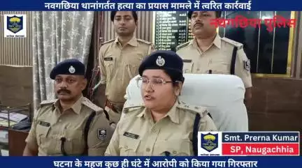 नवगछिया थानांगर्तत हत्या का प्रयास मामले में त्वरित कार्रवाई, घटना के महज कुछ ही घंटे में आरोपी को किया गया गिरफ्तार। इस संबंध में प्रेस वार्ता के माध्यम से विस्तृत जानकारी देते हुए श्रीमती प्रेरणा कुमार पुलिस अधीक्षक, नवगछिया।