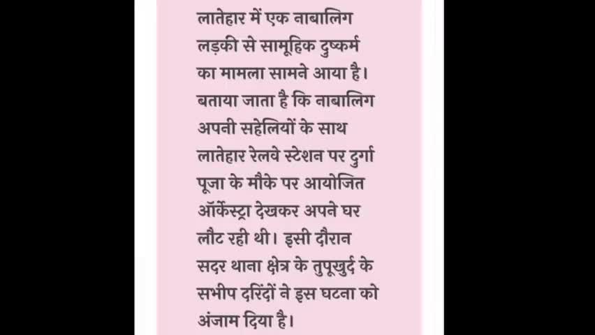 लातेहार में नाबालिग से सामूहिक दुष्कर्म, अगवा कर दरिंदों ने दिया घटना को अंजाम । घटना लातेहार रेलवे स्टेशन की है |