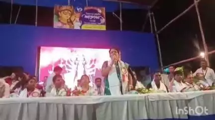 মহাষষ্ঠীর সন্ধ্যায় সিমলাপালের লাল ময়দান যেন মুহূর্তে রূপ নিল সাংস্কৃতিক আসরে। সিমলাপাল সর্বজনীন শারদোৎসব কমিটির দুর্গোৎসবের উদ্বোধনী মঞ্চে বাঁকুড়া জেলা পরিষদের সভাধিপতি অনুসূয়া রায় খালি গলায় গেয়ে উঠলেন আগমনীর গান। তাঁর সেই সুরেলা কণ্ঠে ভাসলেন উপস্থিত হাজারো দর্শক সহ পুজো উদ্যোক্তারা। মুহূর্তের মধ্যে মণ্ডপ চত্বর জুড়ে বেজে উঠল করতালি, উচ্ছ্বাস আর আবেগের স্রোত।অনুসূয়া রায় বলেন, “ভুল-ত্রুটি হলে ক্ষমা করবেন, আমি শুধু খালি গলায় মা-কে ডাক দিতে চাই।”