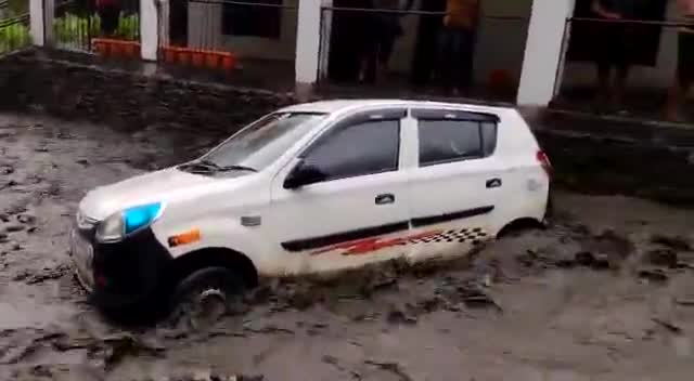 सिरमौर के नौराधार में भारी बरसात में फंसी गाड़ी #shimla #sirmaur #rain #himachal_pradesh
