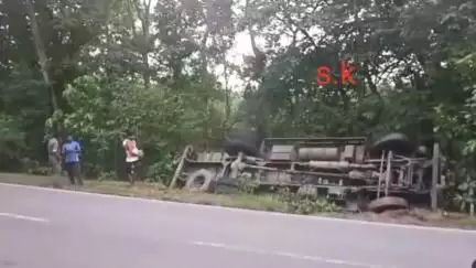 कोडरमा घाटी स्थित लठबहिया के पास लोहा लदा एक ट्रक और नियंत्रित होकर पलटा।