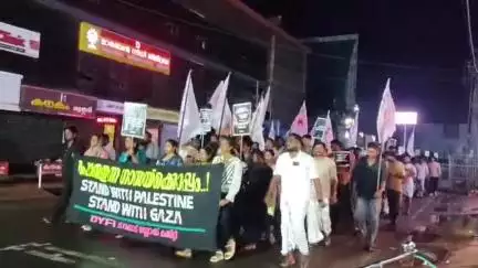 ചാവക്കാട്: ഫലസ്തീൻ ജനതക്ക് ഐക്യദാർഢ്യമറിയിച്ച് DYFI ചാവക്കാട് ബ്ലോക്ക് കമ്മിറ്റി നൈറ്റ് മാർച്ച് സംഘടിപ്പിച്ചു