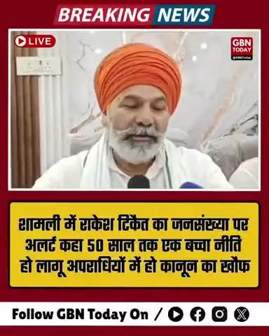 शामली पहुंचे राकेश टिकैत का बड़ा बयान: "देश में बने जनसंख्या नियंत्रण कानून, 50 साल तक एक ही बच्चा हो", बोले — "अपराधियों में हो कानून का डर", आज़म खान की रिहाई पर कहा — "अपने ही नहीं पहुंचे मिलने" #gbntoday #RakeshTikait #PopulationControl #OneChildPolicy #UPEncounter #AzamKhan #ShamliNews #BKU #LawAndOrder #UPPolitics #BreakingNews #RuralVoice #TikaitStatement