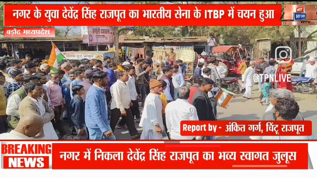 देवेंद्र सिंह राजपूत का हुआ आर्मी ITBP में चयन निकला बड़ौद में जुलूस हुआ जगह जगह स्वागत।