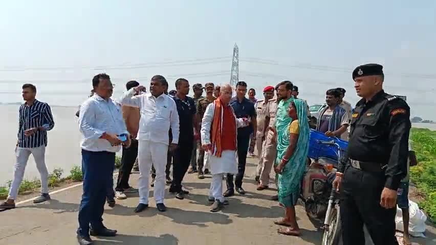 बाढ़ पीड़ितों का हाल जानने पहुंचे उपमुख्यमंत्री श्री विजय कुमार सिन्हा साथ मे शेखपुरा के पूर्व विधायक रणधीर कु सोनी