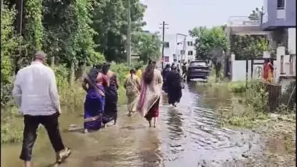 धुळे शहरातील वाडी भोकररोडवरील गुलमोहर सोसायटीतील नागरिक अक्षरशः नरकयातना भोगत आहेत. गेल्या पंचवीस वर्षांपासून रस्ते आणि गटारींअभावी त्रस्त असलेल्या या वसाहतीला मुसळधार पावसाने अक्षरशः तळ्याचे स्वरूप दिले आहे. गुडघाभर पाण्यातून जीव मुठीत धरून वाट काढताना नागरिकांना तारेवरची कसरत करावी लागत आहे. इतकंच नाही, तर या साचलेल्या पाण्यात आता विषारी सापांचा वावर वाढल्याने परिसरात प्रचंड दहशतीचे वातावरण निर्माण झाले आहे, ज्यामुळे लोकांचे दैनंदिन जीवन पूर्णपणे ठप्प झाले आहे.