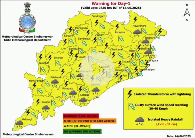 ଡୁଙ୍ଗୁରିପାଲି: ଆସନ୍ତାକାଲି ଜିଲ୍ଲାରେ ବିଜୁଳି ଘଡଘଡି ସହ ବର୍ଷା ସମ୍ଭାବନା ନେଇ ୟେଲୋ ୱାର୍ଣ୍ଣିଂ ଜାରି