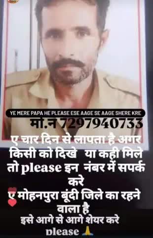 गुमशुदा मोहनपुरा बूंदी इन नंबरों में सूचना प्रदान करें ➡️ 7297940733 🙏🙏🙏