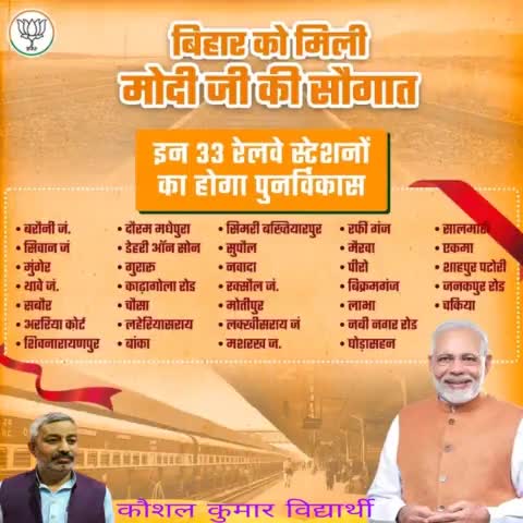 पीएम मोदी जी ने दी बिहार को बड़ी सौगात। 33 रेलवे स्टेशनों का होगा आधुनिक रूप से कायाकल्प।
