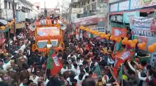 गोरखपुर: मुख्यमंत्री योगी के रोड शो में उमड़ी भीड़, भगवामय हुई सड़कें, घरों से फूल बरस रहे हैं लोग...