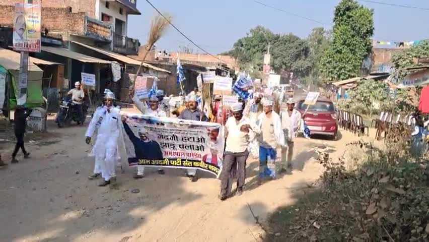 नगर निकाय चुनाव में भ्रष्टाचार और गंदगी के खिलाफ आम आदमी पार्टी, संत कबीर नगर ने निकाली पदयात्रा!