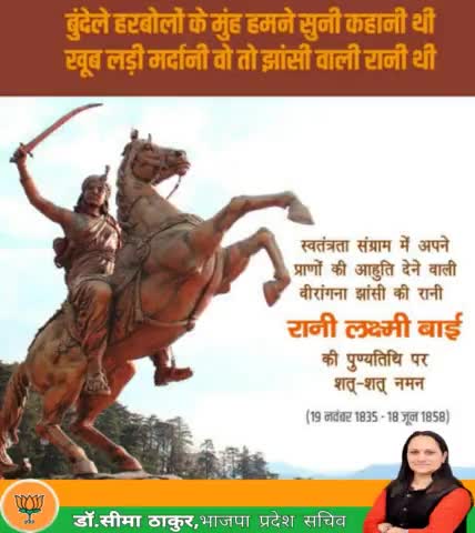स्वतंत्रता संग्राम में अपने प्राणों की आहुति देने वाली महान वीरांगना रानी लक्ष्मीबाई जी की पुण्यतिथि पर शत शत नमन ll
