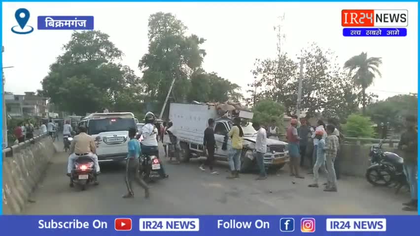 बिक्रमगंज: धनगाई पुल के पास दो वाहनों की हुई टक्कर बाल बाल बचे गाड़ी में मौजूद लोग। @ir24news #bikramganj