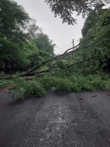अमड़ापाड़ा: अमड़ापाड़ा थाना के सामने पाकुड़ दुमका मुख्य सड़क पर आंधी तूफान से गिरा पेड़ आवागमन बाधित