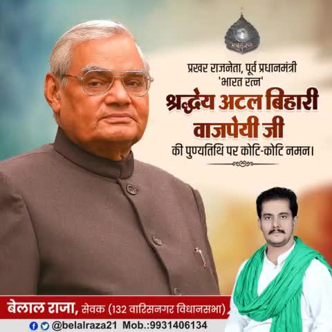 पूर्व प्रधानमंत्री “भारत रत्न” श्रद्धेय अटल बिहारी वाजपेयी जी की पुण्यतिथि पर भावभीनी श्रद्धांजलि।