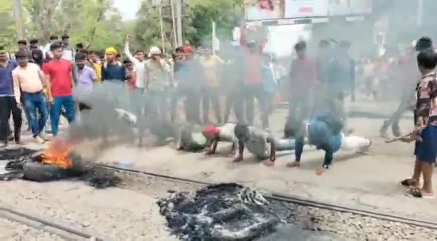 डुमरांव: डुमरांव में सेना बहाली पर सड़क जाम के बाद आक्रोशित छात्रों ने किया रेलवे ट्रैक जाम, की आगजनी