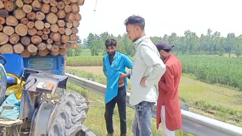 रामपुर मनिहारन: NH 344 पर लकड़ी से भरी ट्रैक्टर ट्रॉली में ट्रैक्टर का टायर फटा, चालक ने कूदकर बचाई जान