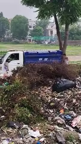 #LMC गंदगी की भरमार लखनऊ की सड़कों पर कूड़े का जमावड़ा घटना मिनी स्टेडियम विकासनगर की है