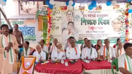 ডক্টর সর্বপল্লী রাধাকৃষ্ণানের জন্মদিন পালন করল তৃণমূল। জন্মদিন উপলক্ষে এলাকার বর্ষিয়ান শিক্ষকদের সম্বর্ধনা জানালো দাঁতন ২ নম্বর ব্লক তৃণমূল কংগ্রেস। শুক্রবার পশ্চিম মেদিনীপুর জেলার দাঁতন ২ নম্বর ব্লকের ধনেশ্বরপুরে ডঃ সর্বপল্লী রাধাকৃষ্ণন এর জন্মদিন উপলক্ষে এলাকার প্রায় শতাধিক শিক্ষকদের সংবর্ধনা জানানো হয়। এদিন উদ্বোধনী সংগীত ও সর্বপল্লী রাধাকৃষ্ণাণ এর প্রতিকৃতিতে মাল্য দানের মধ্য দিয়ে শুরু হয় অনুষ্ঠান।