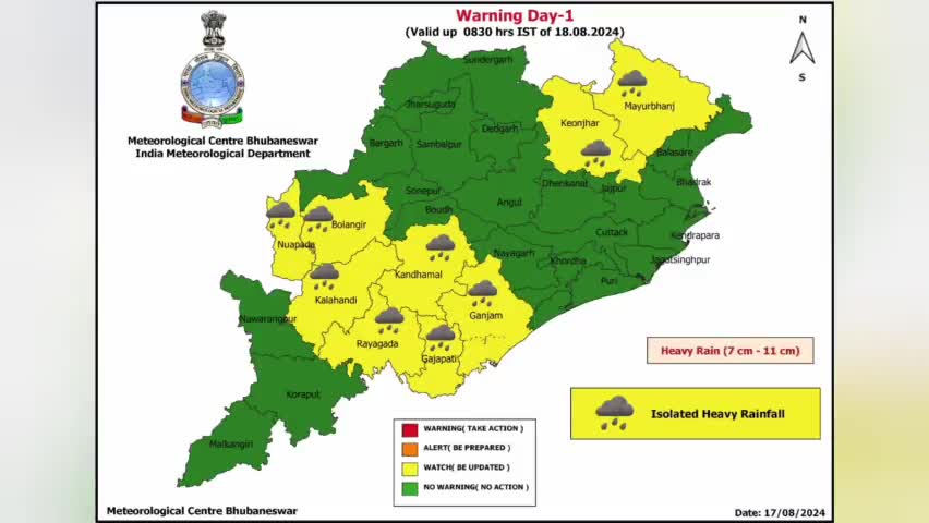 ପାରଳାଖେମୁଣ୍ଡି: ଆସନ୍ତା ୧୮ ତାରିଖ ପର୍ଯ୍ୟନ୍ତ ପାଣିପାଗ ବିଭାଗ ପକ୍ଷରୁ ଗଜପତି ଜିଲ୍ଲାକୁ ୟେଲୋ ୱାର୍ଣ୍ଣିଂ ଜାରି