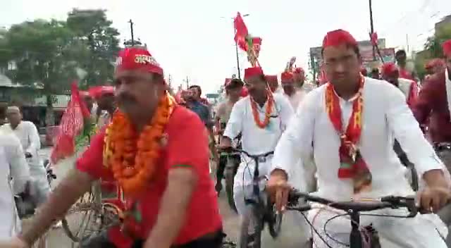 जिलाध्यक्ष प्रमोद त्यागी जी के नेतृत्व में 9 वे दिन की समाजवादी क्रांति साईकिल रैली