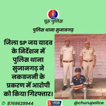 #churupolice जिला SP जय यादव के निर्देशन में पुलिस थाना सुजानगढ़ ने नकबजनी के प्रकरण में आरोपी को किया गिरफ्तार।