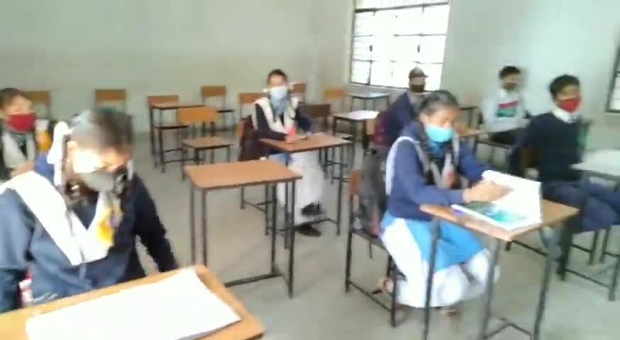 धुमाकोट: आदर्श राजकीय इंटर कालेज धुमाकोट में मास्क तथा सोशल डिस्टेंसिंग आदि गाइड लाइन के साथ संचालित हुईं कक्षाएं