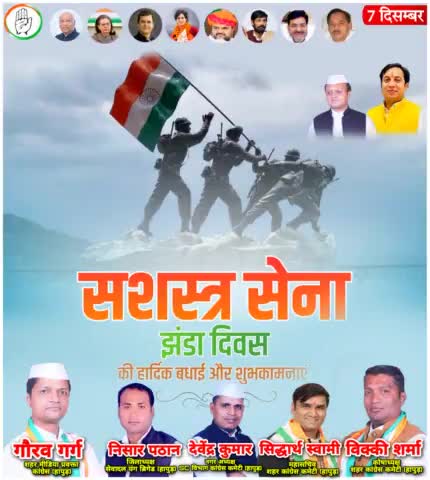 समस्त देशवासियों को सशस्त्र सेना झंडा दिवस की बहुत-बहुत शुभकामनाएं.! जय हिंद जय भारत भारत माता की जय 🇮🇳🇮🇳