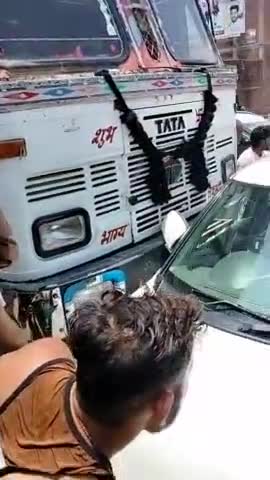 डबरा पिछोर तिराहा जिला ग्वालियर मध्य प्रदेश ट्रक ड्राइवर ने मारी चार पहिया गाड़ी को टक्कर बाल-बाल बच्चा चालक