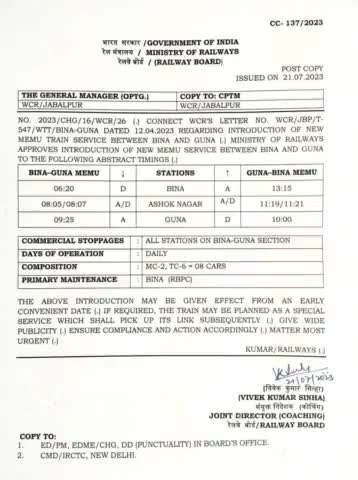ЁЯЩПрдмрд╣реБрдд рдмрд╣реБрдд рдзрдиреНрдпрд╡рд╛рдж рдЖрднрд╛рд░ ЁЯЩП рдЬреИрд╕рд╛ рдХрд┐ #рдорд╛рдирдиреАрдп_рд╕рд╛рдВрд╕рдж_рдбреЙ_рдХреЗрдкреА_рдпрд╛рджрд╡_рдЬреА рдиреЗ рдЖрдк рд╕рднреА рд╕реЗ рд╡рд╛рдпрджрд╛ рдХрд┐рдпрд╛ рдерд╛ рдХрд┐ рдЧреБрдирд╛ рд╡ рдмреАрдирд╛ рдХреЗ рдмреАрдЪ рдореЗрдореВ рдЯреНрд░реЗрди рдЕрддрд┐ рд╢реАрдШреНрд░ рдкреНрд░рд╛рд░рдВрдн рд╣реЛрдиреЗ рдЬрд╛ рд░рд╣реА рд╣реИред рд╣рдорд╛рд░реА рдЙрд╕реЗ рдорд╛рдВрдЧ рдХреЛ рд░реЗрд▓ рдордВрддреНрд░рд╛рд▓рдп рджреНрд╡рд╛рд░рд╛ рд╕реНрд╡реАрдХреГрдд рдХрд░ рджрд┐рдпрд╛ рдЧрдпрд╛ рд╣реИред