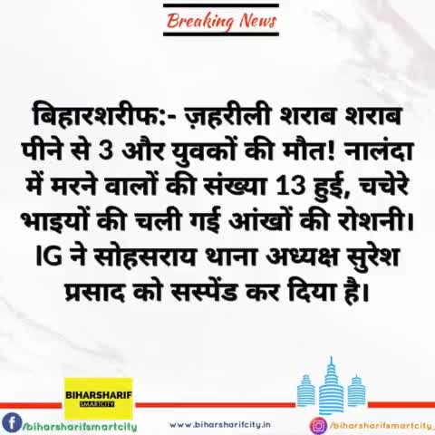 जहरीली शराब पीने से अब तक कुल 13 लोगों की हुई मौत