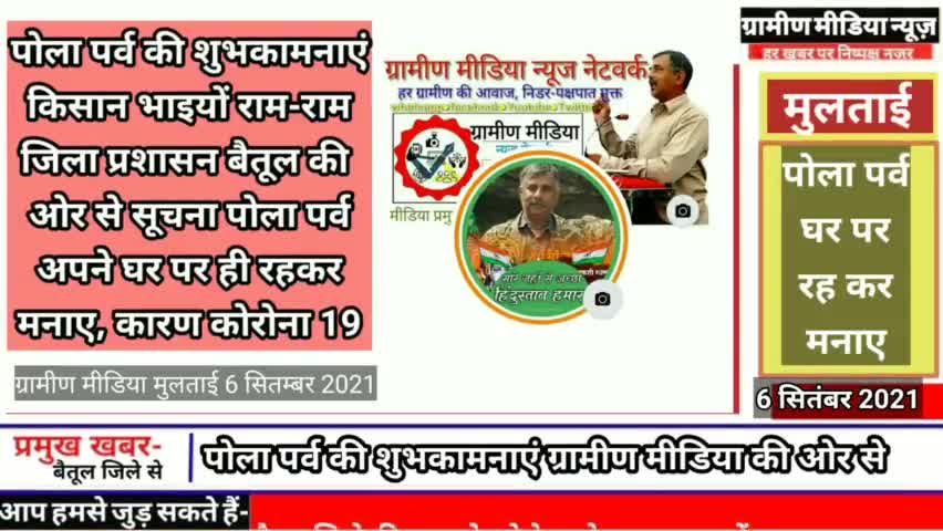 पोला पर्व की शुभकामनाएं घर पर रह करके ही पोला मनाए। कोविट 19 के कारण