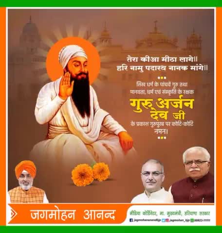 सिख धर्म के पांचवें गुरु तथा मानवता, धर्म एवं संस्कृति के रक्षक गुरु अर्जन देव जी के प्रकाश गुरुपुरब पर कोटि-कोटि नमन🙏