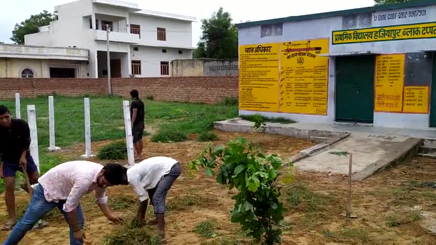 स्वतंत्रता दिवस की पूर्व संध्या पर प्राथमिक विद्यालय हज़ियापुर पर श्रमदान करते गांव के युवा।