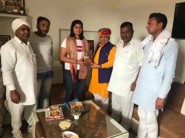 #बुलगारिया_इंटरनेशनल टूर्नामेंट में #सिल्वर_मेडल जीत कर लाई है मेरे इलाका पंवार के बौंदकला गाँव की बेटी कविता परमार को क्षेत्र के लोगों के साथ निवास्थान पर मिलकर बधाई दी मैं उसके उज्वल भविष्य की कामना करता हूं ||