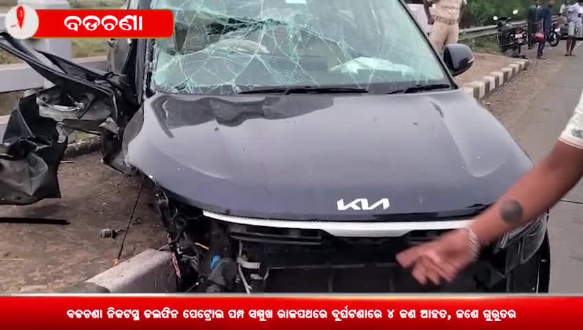 ବଡଚଣା: ବଡଚଣା ନିକଟସ୍ଥ ପେଟ୍ରୋଲ ପମ୍ପ ସମ୍ମୁଖ ରାଜପଥରେ କାର୍ ଦୁର୍ଘଟଣାରେ ୪ଜଣ ଆହତ, ଜଣେ ଗୁରୁତର